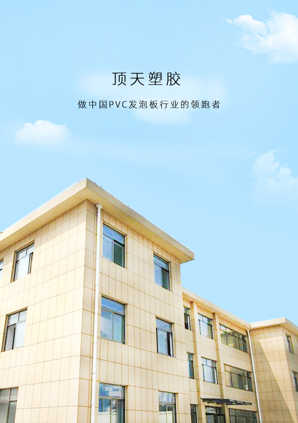 淄博頂天塑膠有限公司坐落于山東省淄博市淄川經濟開發區,公司成立于2004年6月,占地面積30,000平方米,員工300余人, 其中高級工程師20人。公司致力于生產和研發PVC發泡板材,年產量50000噸,可生產PVC自由發泡板、PVC 結皮發泡板、PVC 共擠發泡板等PVC發泡板材。廣泛應用于廣告、家具、建筑、裝飾等行業。公司已通過ISO9001和ISO14001國際體系認證,是一家集科、工、貿一體的大型PVC發泡板生產商。
